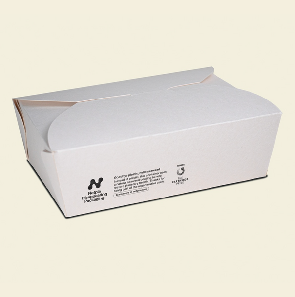 Designed and made in the UK by award-winning sustainable materials company, Notpla. This innovative takeaway packaging features a 100% natural seaweed-based coating that keeps food fresh and protected. Unlike traditional alternatives, it can compost at home in just six weeks, contributing to healthy soil - not pollution.